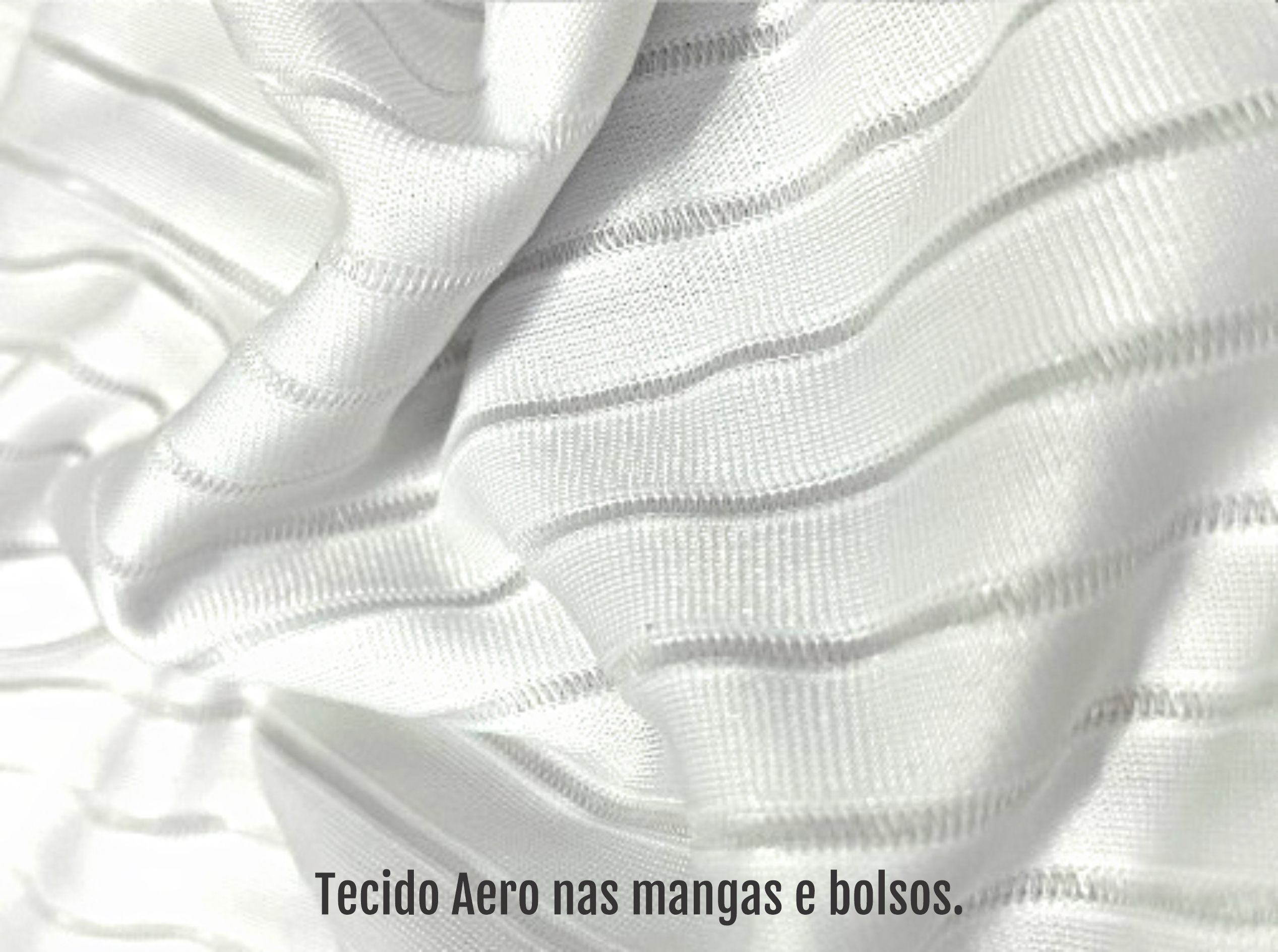 A parte frontal e as costas utilizam o tecido AirCell, com microperfurações que garantem respiração contínua e controle térmico até nos dias mais quentes.