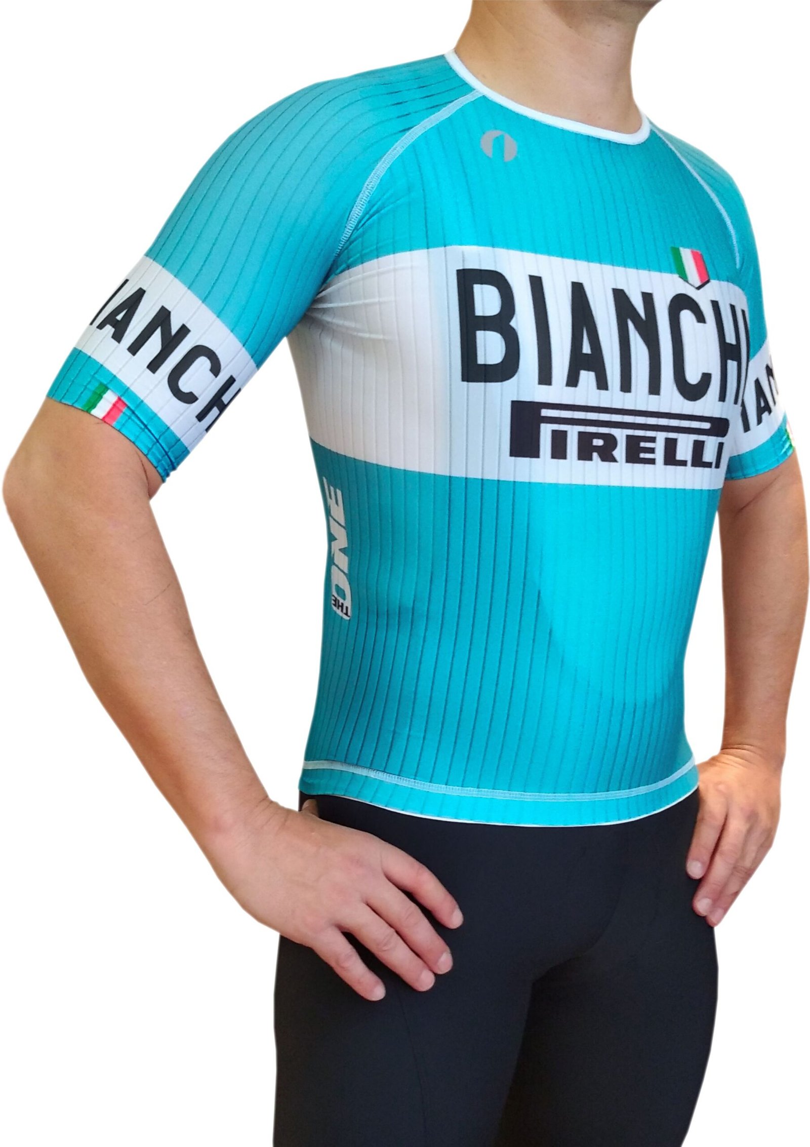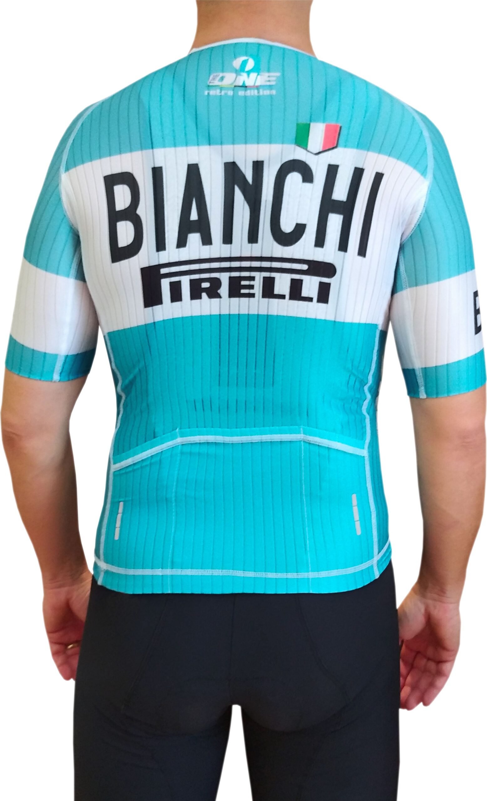 A elegância do passado agora com a tecnologia do presente! A Camisa Retrô da Bianchi é mais que uma peça de vestuário — é um tributo à história do ciclismo, agora com performance de última geração.