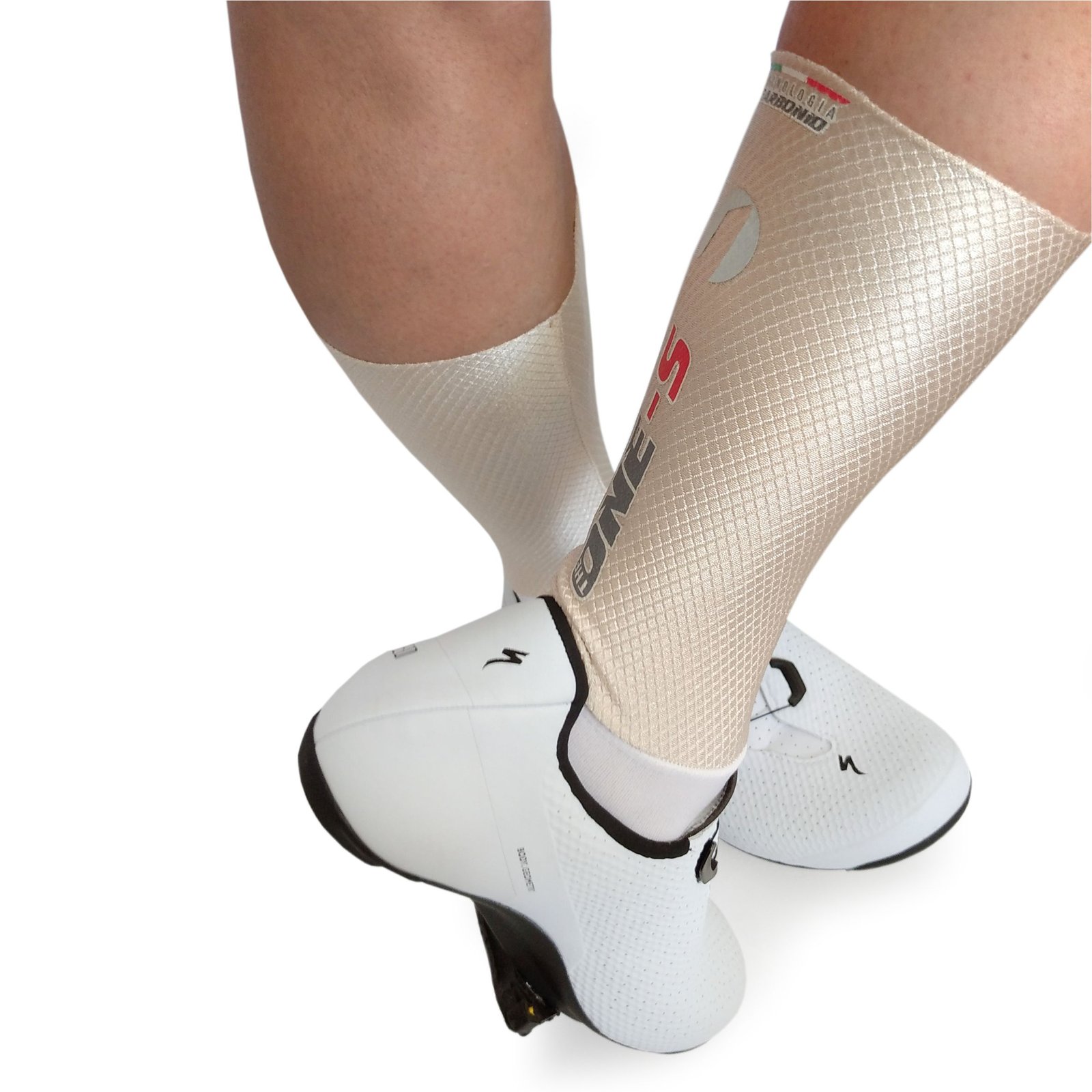 A Meia CARBON, da linha ONE-S®  foi desenvolvida para ciclistas que buscam máximo desempenho aliado a conforto absoluto. Sua  trama, projetada em estilo “fios de carbono”, auxiliam no controle térmico, reduzem odores e mantêm os pés secos mesmo em pedais longos e intensos.